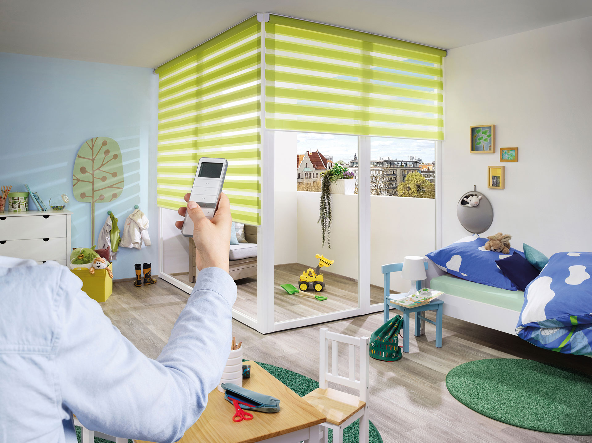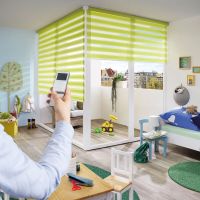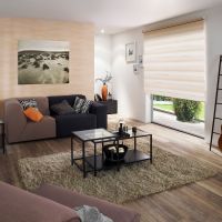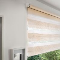 Mit dem raffinierten Doppelrollo ist es Ihnen möglich, das Licht im Raum auf eine besondere Weise zu regulieren. Es besteht aus zwei Schichten, die abwechselnd blickdichte und transparente gewebte Streifen haben. Je nach Position der Streifen lenken Sie Licht und Schatten in Ihr Zuhause.